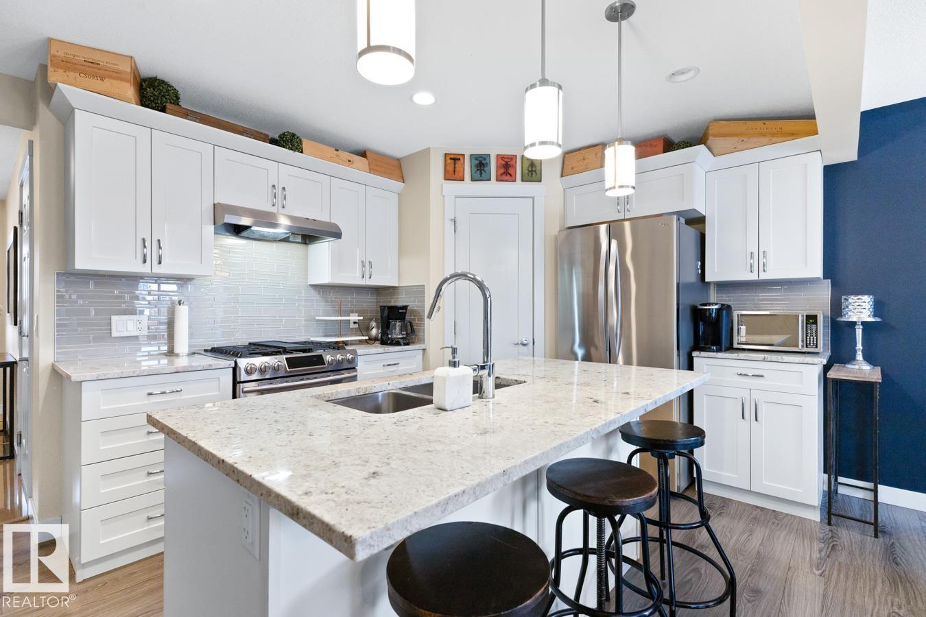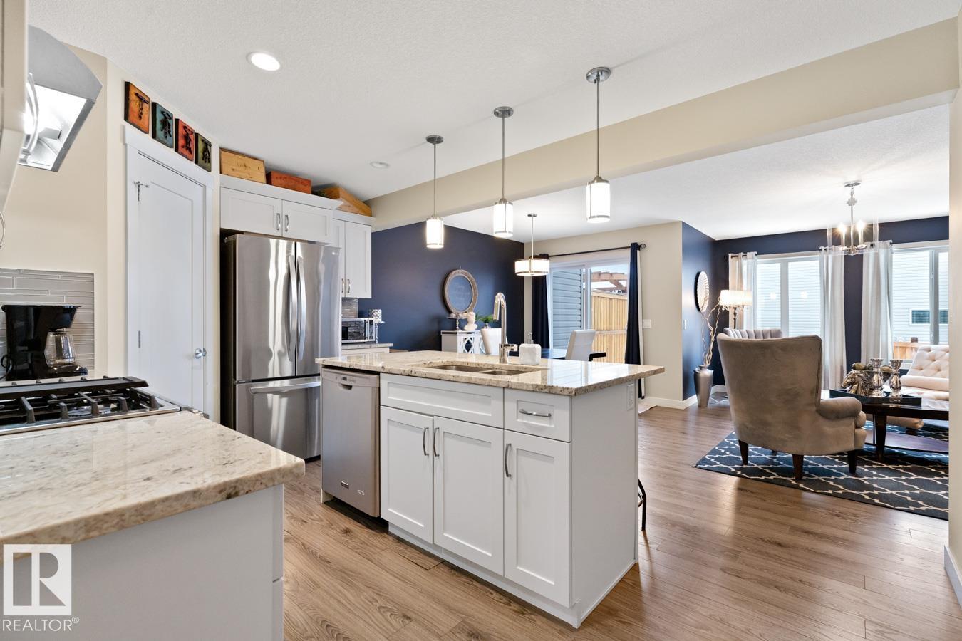 Rare dual primary suite two-storey duplex with a bonus room, ideal for roommates, shared living, or buyers looking to downsize without compromise. A spacious entry welcomes you into the bright, open main level featuring a stunning kitchen with abundant white cabinetry, corner pantry, stainless steel appliances, and a granite island overlooking the dining and living areas. The cozy fireplace and vinyl plank flooring throughout add warmth and style. Upstairs, enjoy the extra living space in the bonus room, pl...
