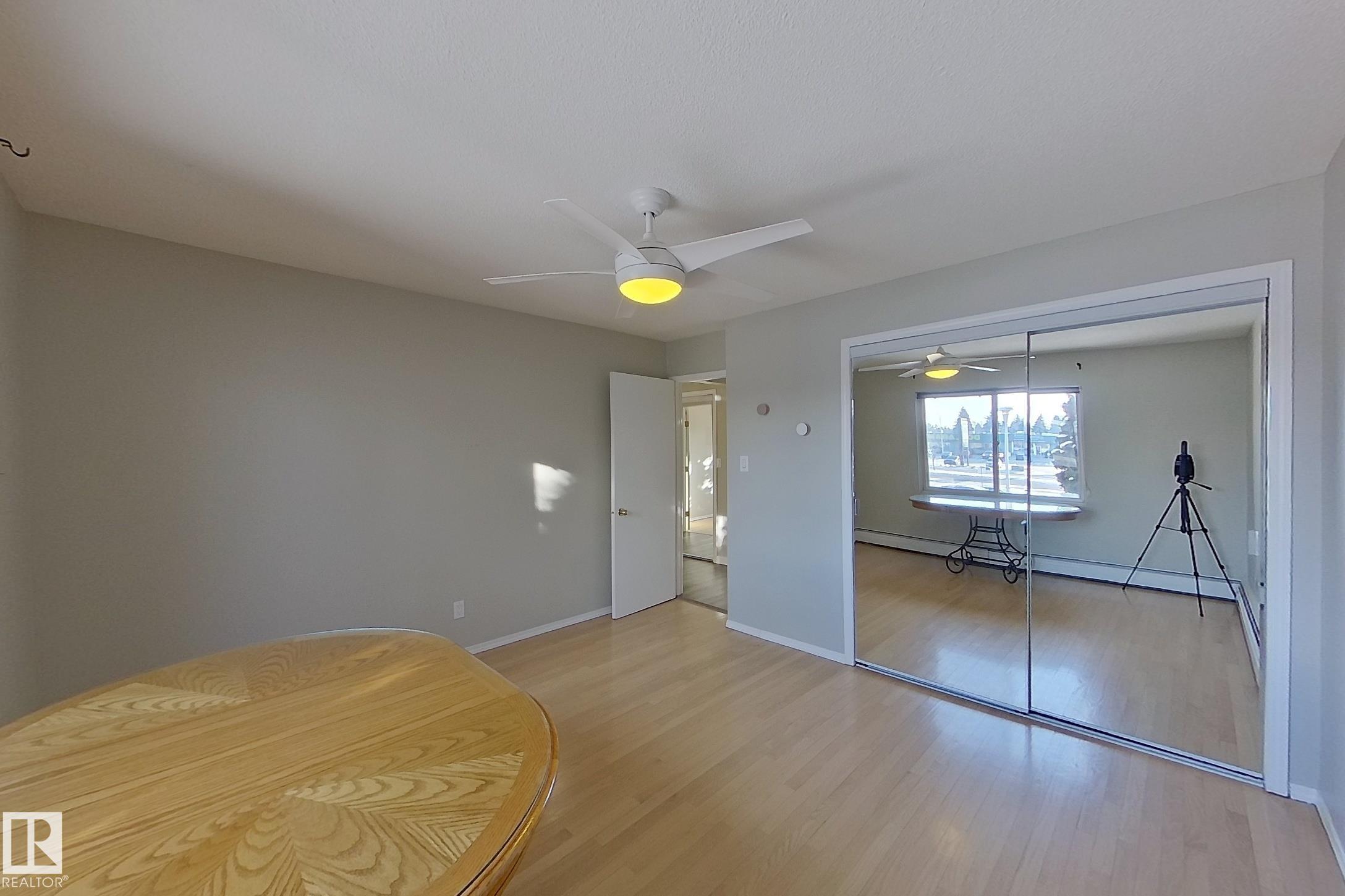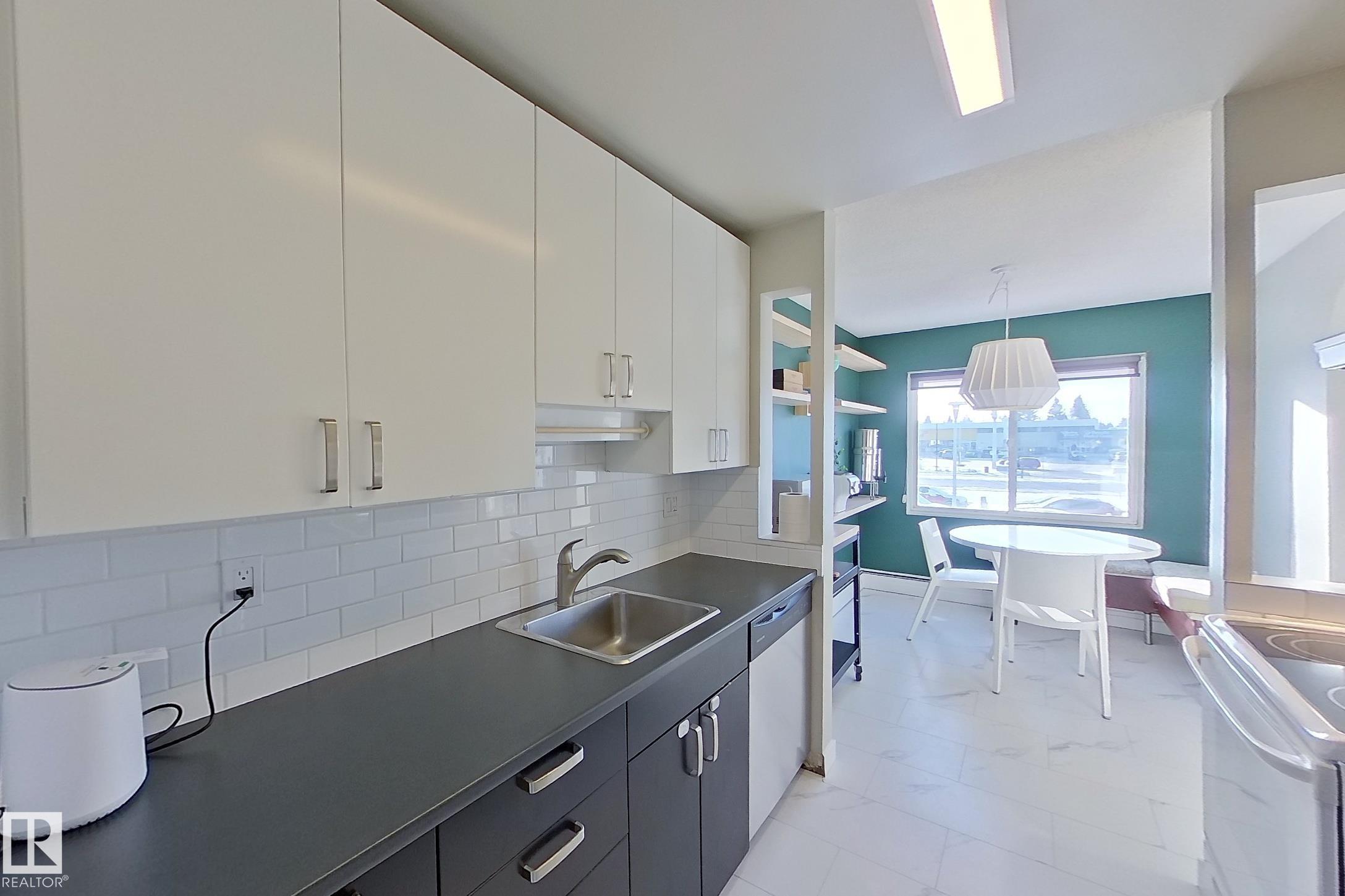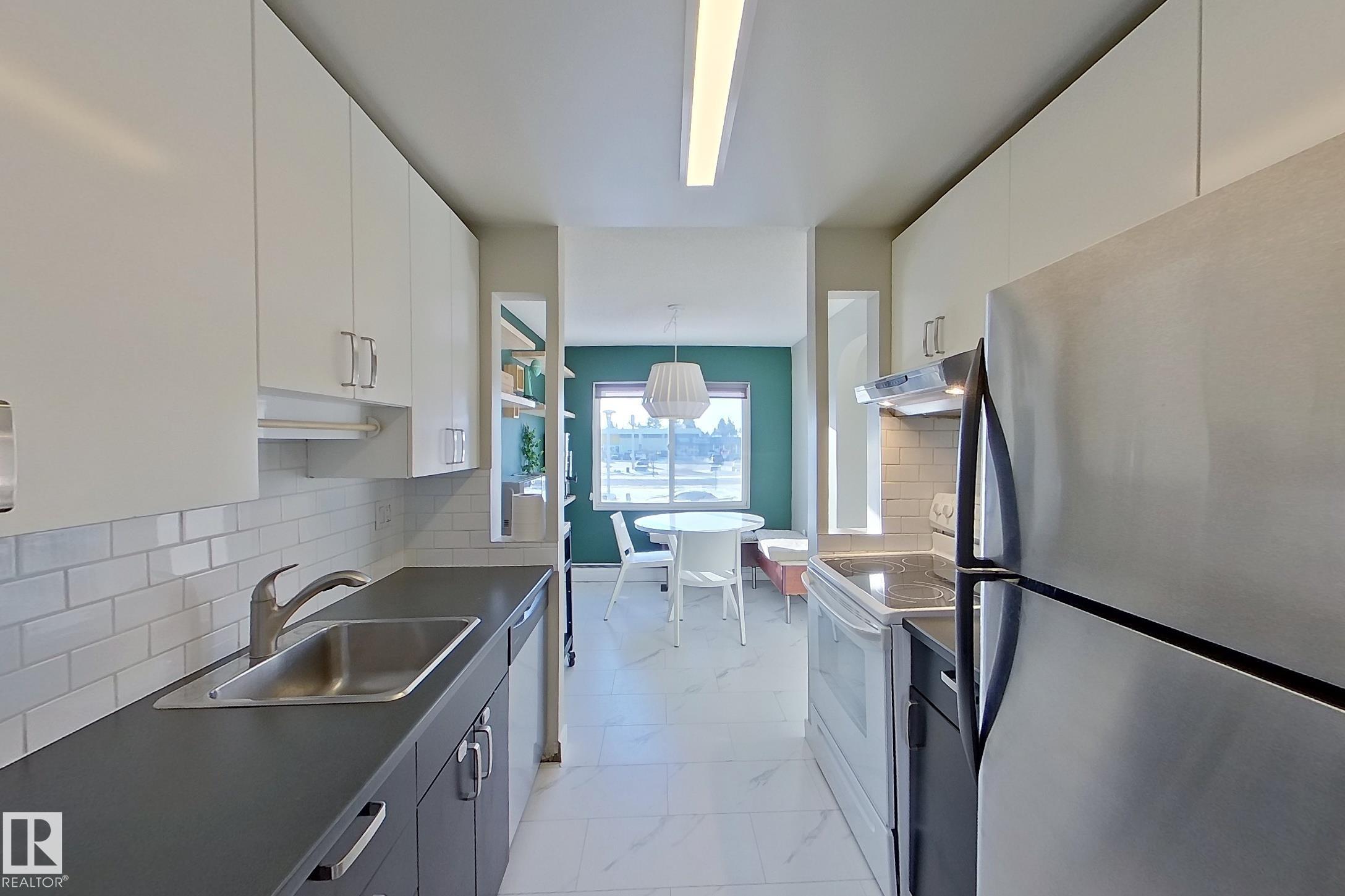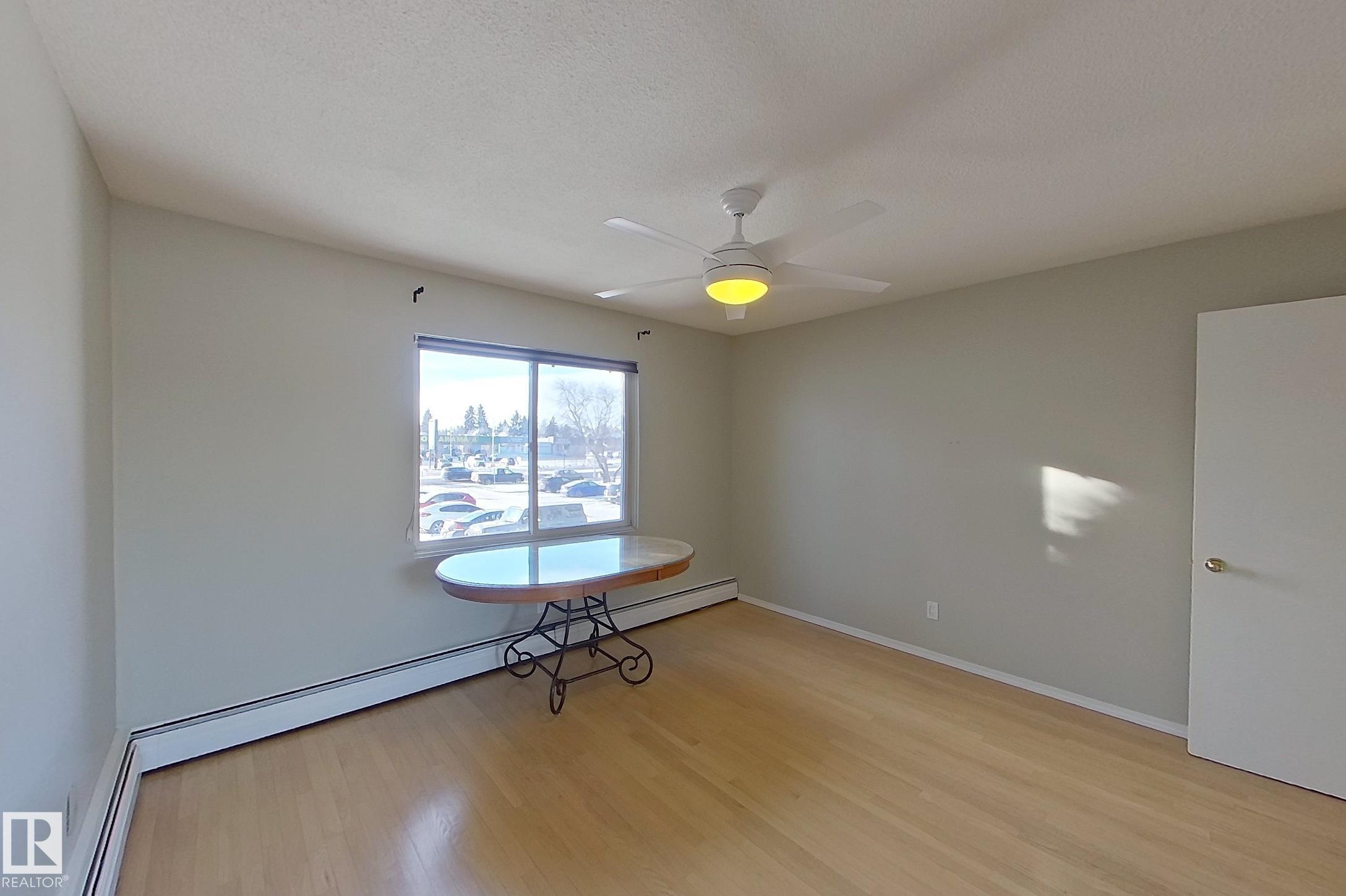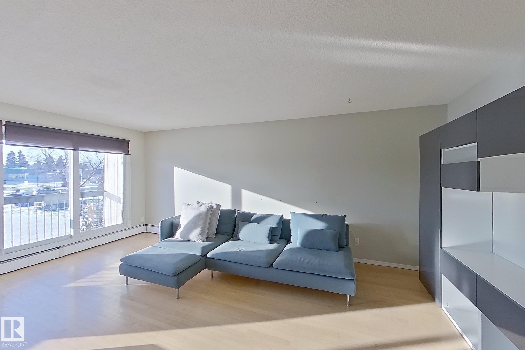 Welcome to this beautifully updated 860 sq ft 2-bedroom condo located just minutes from the University of Alberta, shopping, and the LRT. This bright, south-facing home features upgrades throughout, including high-quality slate in the bathroom backsplash and shower, large ceramic tile in the hallway, bathroom, kitchen, and dining nook, as well as hardwood floors in the living room and both bedrooms. The front entrance opens to a spacious hallway with a large mirrored closet, and elegant French doors lead in...