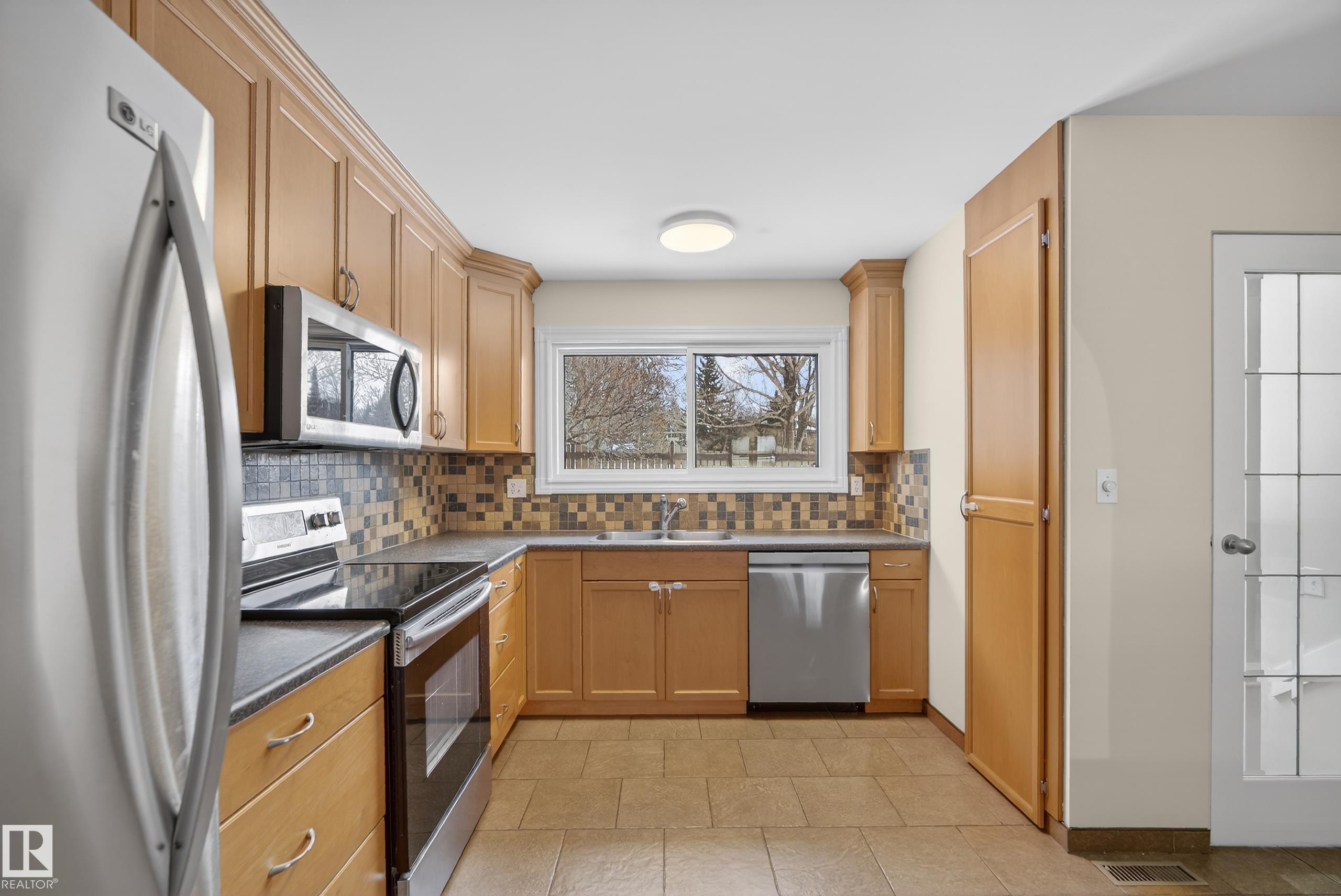 BACKING ONTO A PARK in sought-after Lacombe Park, this well-maintained fully finished bungalow offers over 2,100 sq ft of total living space. The main floor features a spacious living room with a cozy brick wood-burning fireplace, flowing into a renovated kitchen with ceiling-height cabinetry, abundant counter space, pantry, and a breakfast bar. Three generous bedrooms include a king-sized primary with 2-piece ensuite, plus an updated 4-piece bath. The fully finished basement adds a massive rec room, potent...