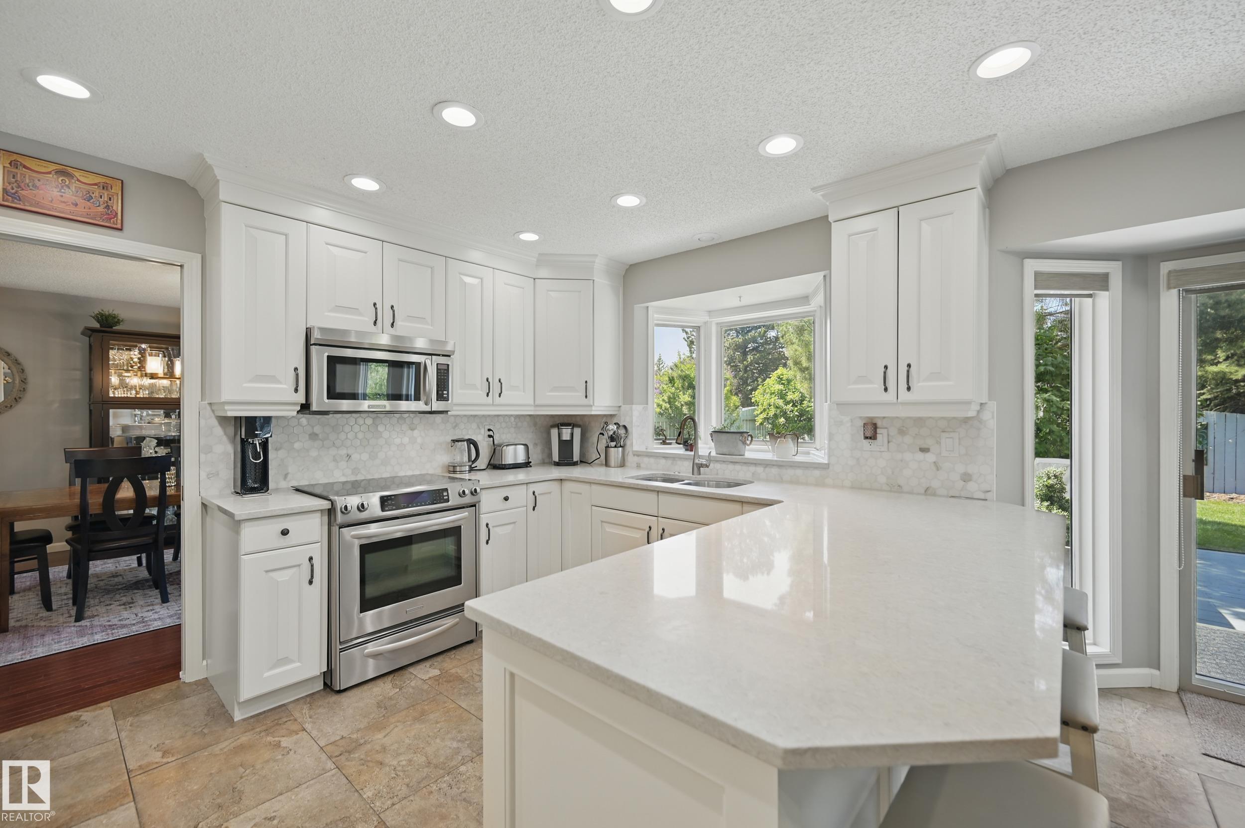 Welcome to this charming 2-storey home in the heart of Blue Quill Estates! Step into a bright foyer with an open-to-below staircase and a sunlit sitting room with a bay window, leading to a formal dining area. The re-modeled and fully renovated white kitchen boasts quartz counters, a stylish backsplash, and a cozy breakfast nook that flows into a sunken living room with a wood-burning fireplace. The main floor also offers a laundry room with sink, mudroom, and 2-pc bath. Upstairs features 4 BEDROOMS, includ...