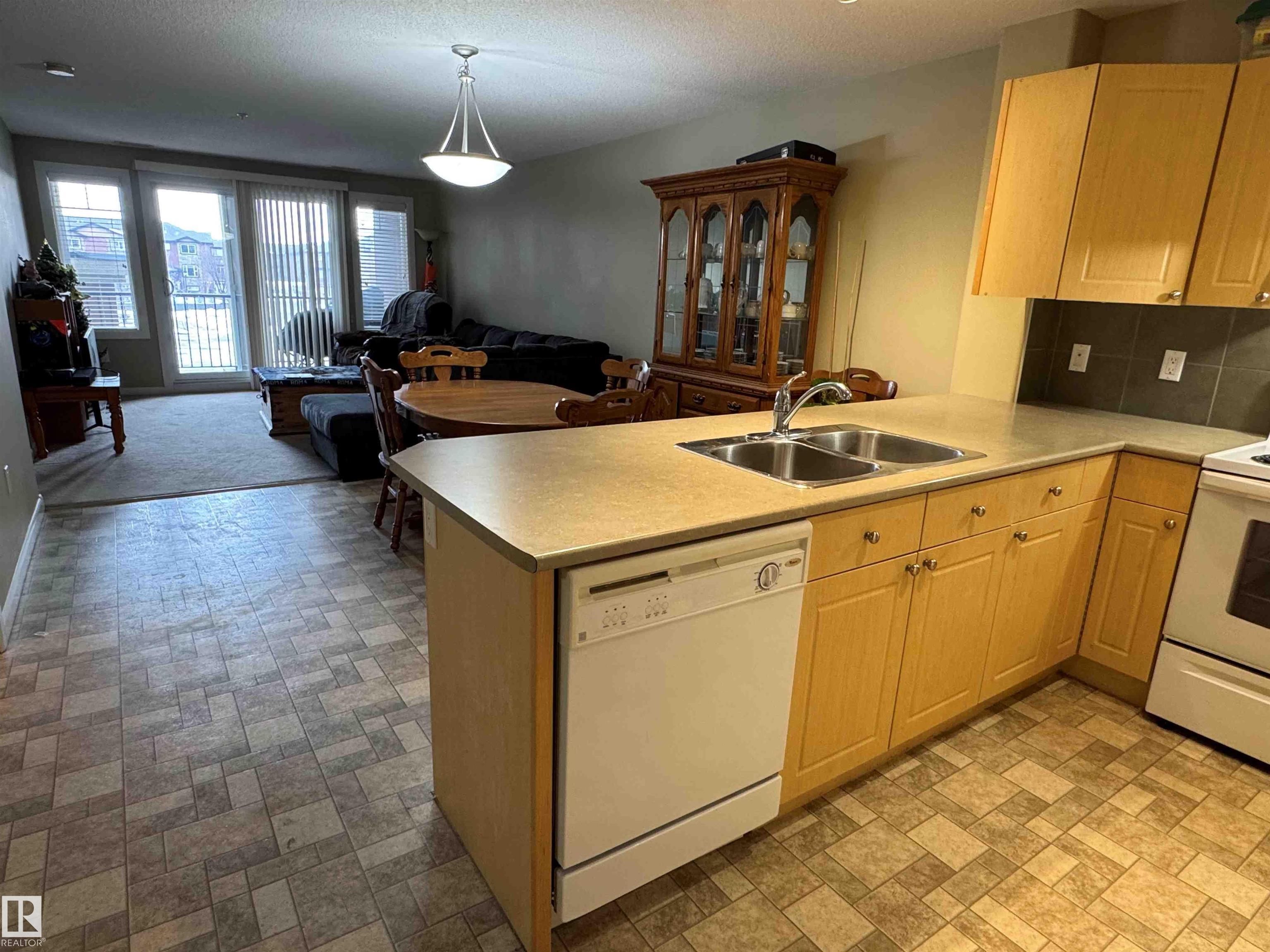 Amazing location in Sherwood Park! This second-floor unit in the sought-after Palisades (300 building) offers 1 bedroom plus den in a well-maintained 18+ complex. The modern open-concept layout features a U-shaped kitchen with eat-up bar and ample counter space, flowing into the dining and living areas. The primary bedroom includes a walk-in closet with direct access to the full 4-piece bath. Enjoy the convenience of in-suite laundry with stacking washer/dryer and additional in-suite storage. The versatile ...
