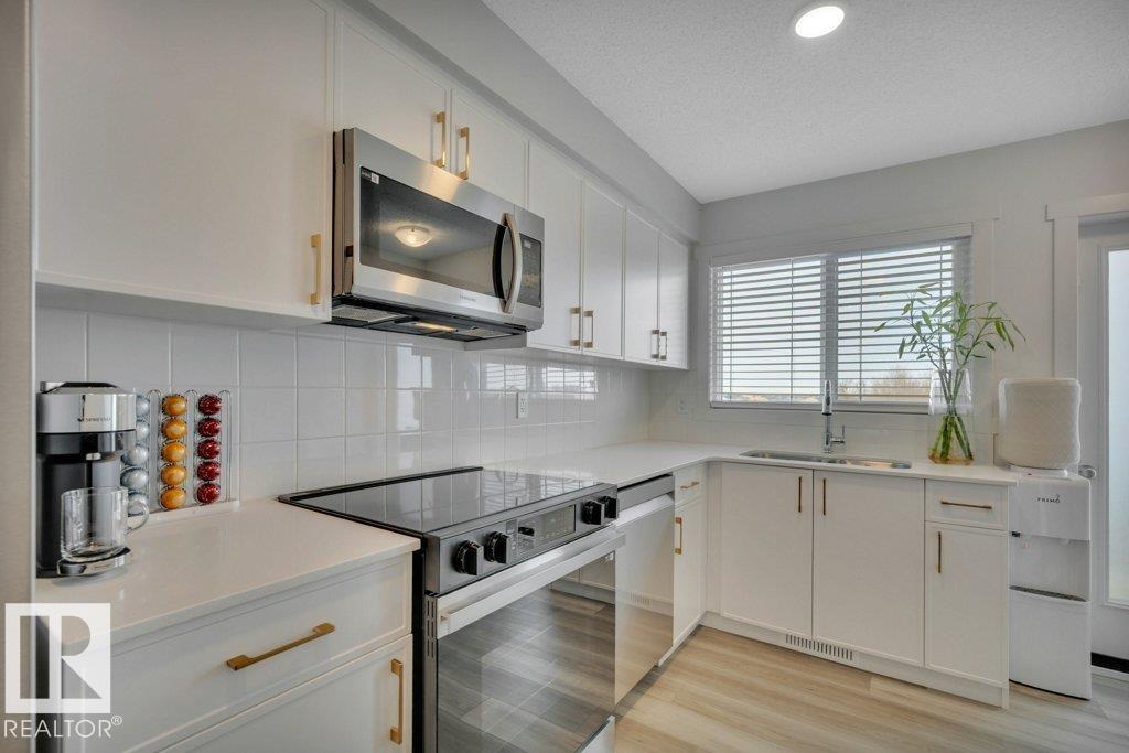 Feels like brand new! This 2024-built townhome in West Secord is in meticulous condition, with modern finishes & upgrades throughout! The main level shines with a bright kitchen featuring quartz counters, subway tile backsplash, brass accents, upgraded induction stove, undermount sink, hood fan/microwave, pantry & garden door to a south-facing balcony with a quiet view. Beautiful vinyl plank flooring flows into the living room with a stunning feature wall complete with custom mantle & electric fireplace. Up...