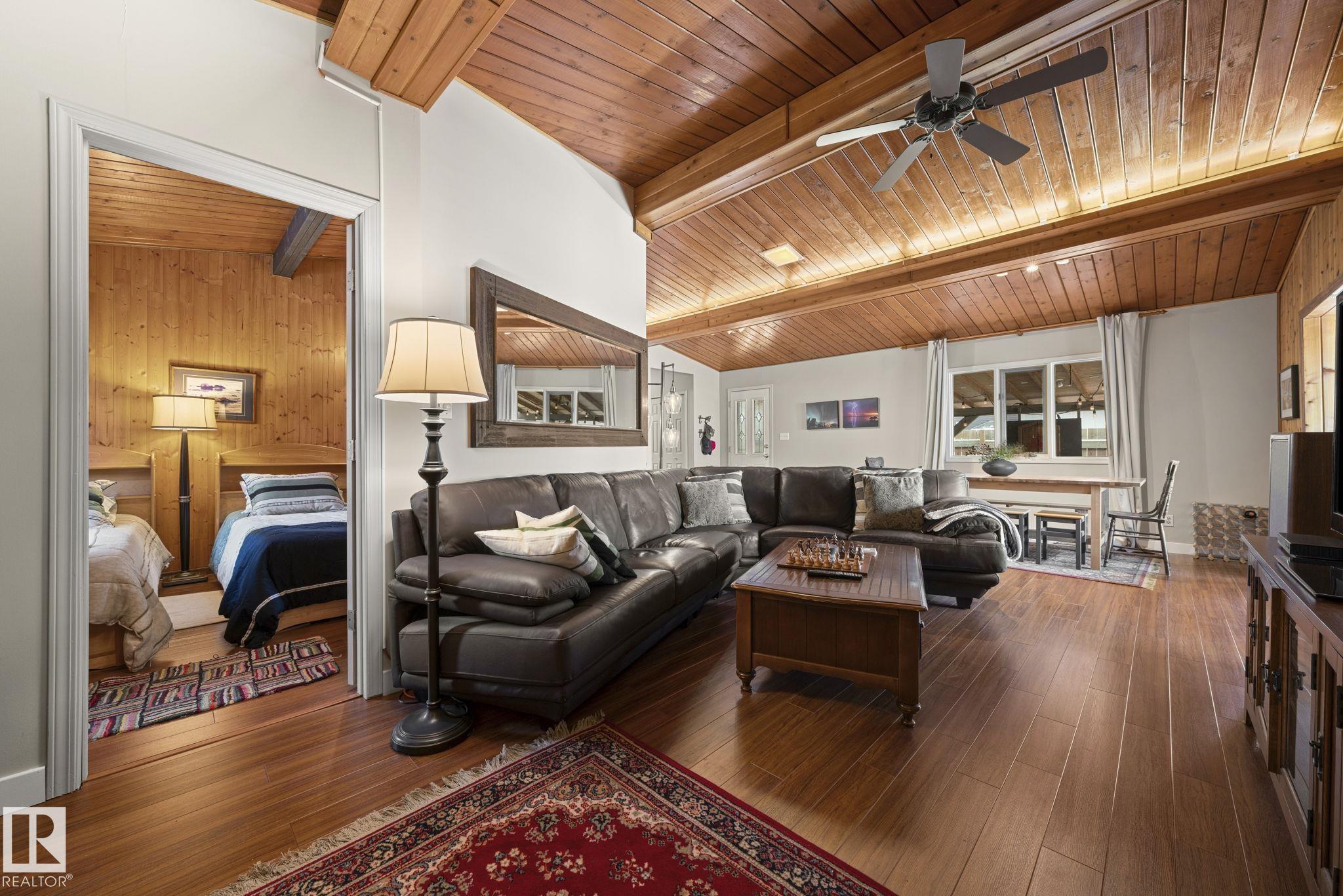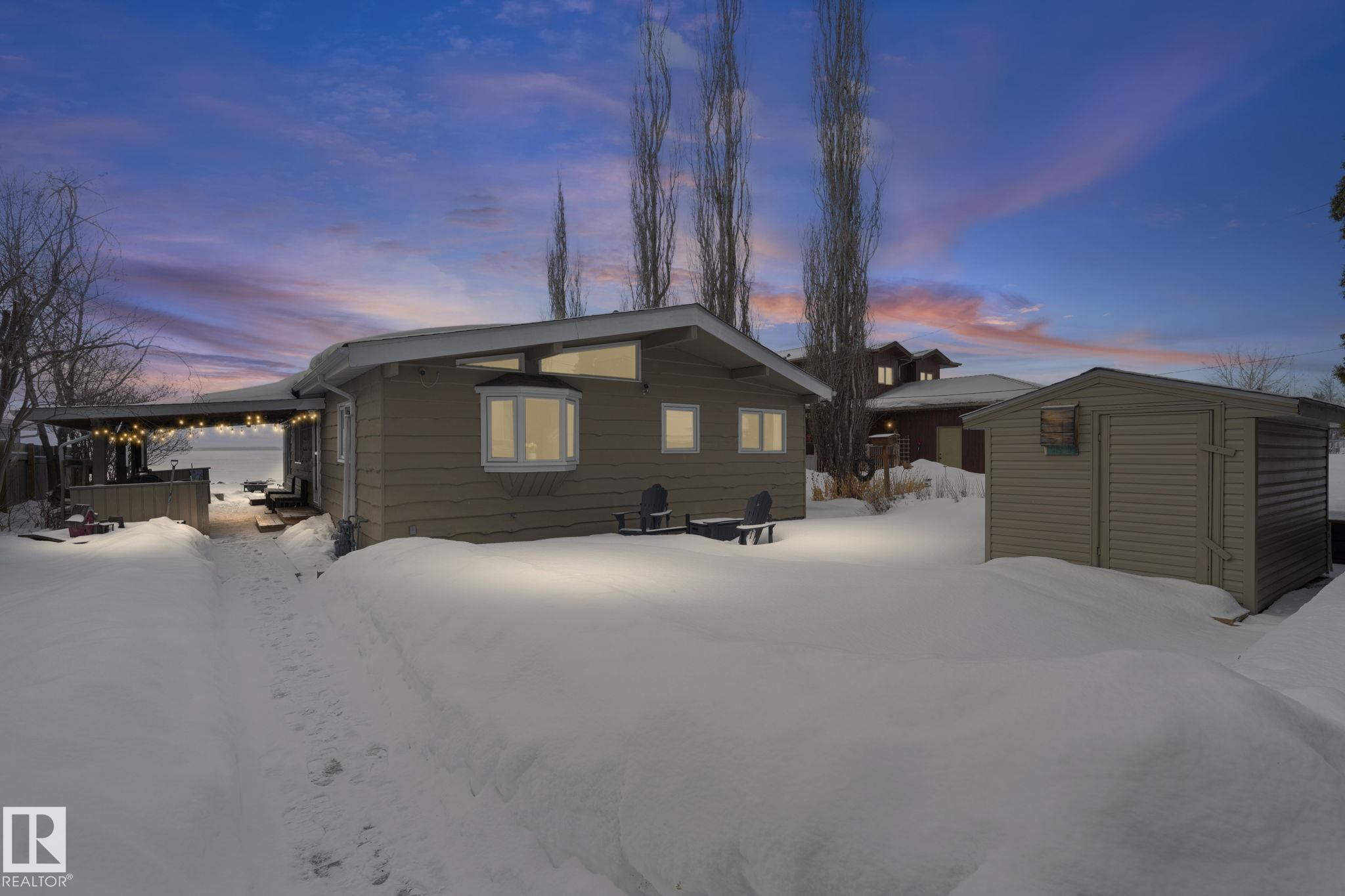Lakefront, 4-season, and ready to enjoy— welcome to 4356 Sunset Dr on Lac Ste. Anne. The perfect cabin for family weekends, summer memories, or a fantastic Airbnb opportunity! You'll love the classic cabin charm of the vaulted wood ceilings and cozy wood-burning fireplace. Step into the adjoining sunroom to enjoy the stunning lake views year-round. The bright eat-in kitchen offers ample cabinets and prep space. The primary bedroom features a three-piece ensuite and walk-in closet. Two more bedrooms and anot...